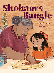 Shoham wears a golden bangle on her wrist, just like her Nana Aziza. Their bangles jingle when they cook, and glitter in the sun. When Shoham and her family must leave Iraq, they are allowed to take only one suitcase each. They may take no jewelry. Shoham has the important job of carrying Nana’s homemade pita bread, which Nana says they will eat when they get to Israel. But when they finally arrive and it is time to eat, Shoham finds a surprise in the pita bread!